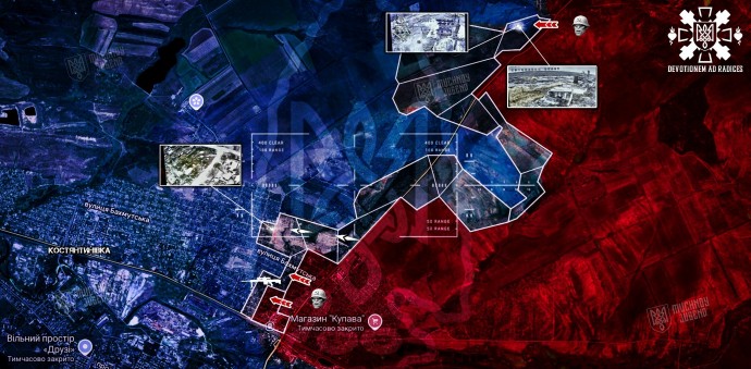 На Константиновском направлении по состоянию на 21 января 2026 сохраняется крайне напряженная ситуация. По имеющейся информации, противник удерживает юго-восточную часть города, в частности, район Старого Селища и Сантуриновки. Также под контролем неприятеля остается южная часть Шанхайского района.