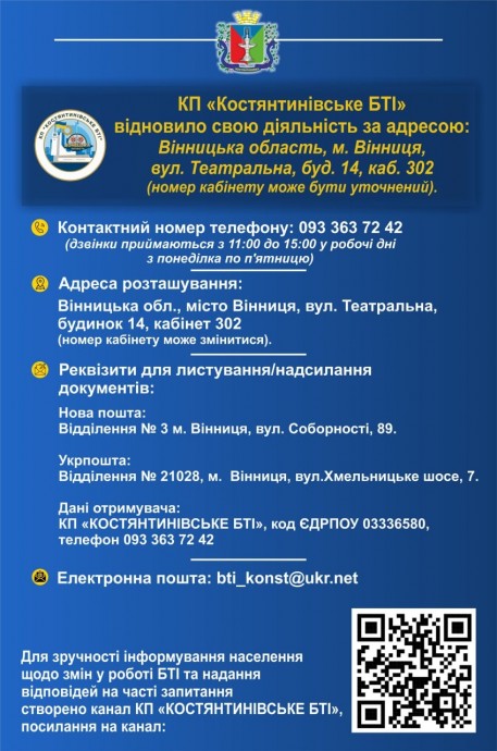 Костянтинівська міська військова адміністрація звернулася до мешканців громади з важливим роз’ясненням щодо виготовлення довідок про об’єкти нерухомого майна. У МВА наголошують: такі послуги в місті Костянтинівці та на території колишнього Костянтинівського району надає виключно КП «Костянтинівське БТІ».