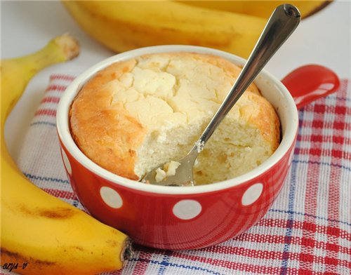 Готовое творожно-банановое суфле подаём со сладким соусом или вареньем.