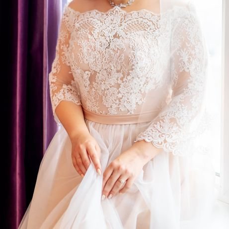 Продам нежное свадебное платье айвори-беж с прозрачными рукавами и лёгким шлейфом. Корсет расшит 3D цветами. Платье в идеальном состоянии, приобреталось в московском бутике. Размер 46-48 с регулирующейсяшнуровкой. Вышлю НП в любой город Украины. Цена 6000 грн. Реальному покупателю торг