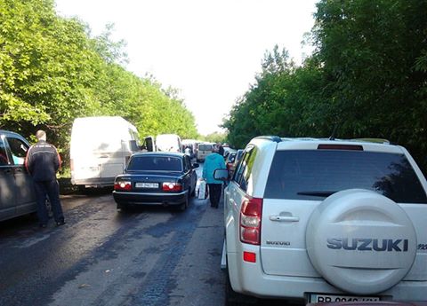 - Очередь из Артемовска в сторону Горловки уже за желтым ларьком.