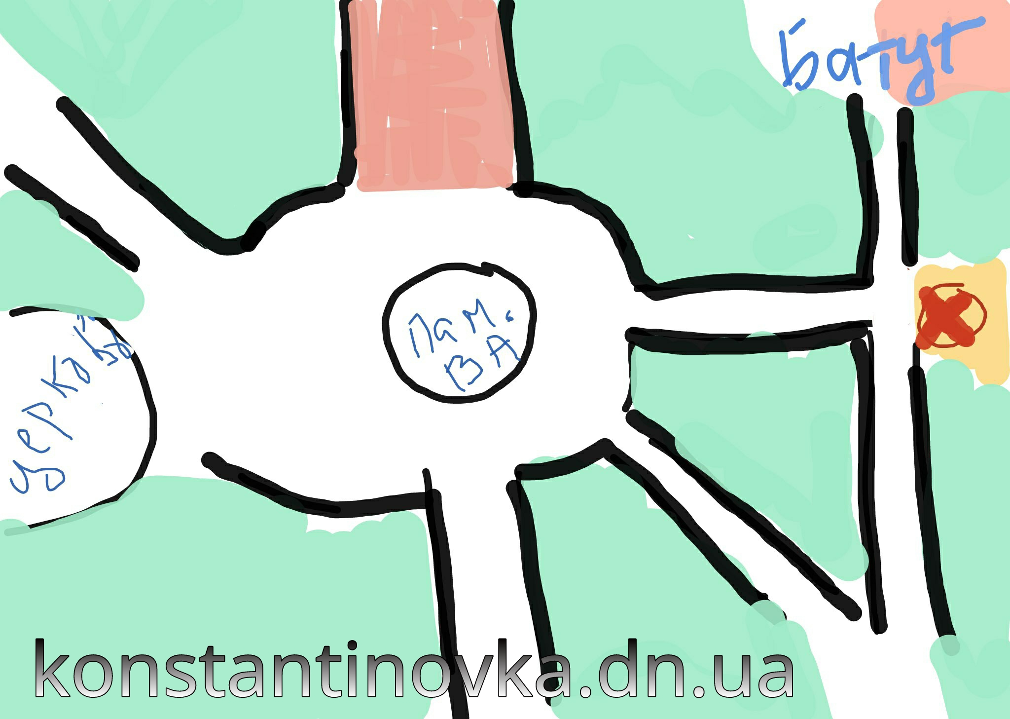 Инцидент произошёл вчера, где-то около 6-7 вечера. Гуляли в парке с двумя годовалыми мальчишками, водили их сначала возле памятника, но там начал рассекать на квадроцикле на хорошей скорости мальчишка годика 4-5. Все мы давно привыкли к этим машинкам, но говоря на хорошей скорости, имею ввиду, что все присутствующие оборачивались, так как летел этот "Шумахер" не так, как другие детки. Сначала он въехал в ворота церкви, после чего мы решили уйти с его трассы, укотили коляски к месту, которое указано крестиком на рисунке. Там немного песка ещё осталось, детки ковырялись лопатками. Мы, родители, стояли общались.