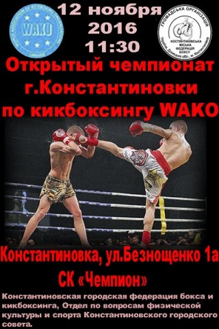 Константиновская городская федерация бокса и кикбоксинга, Отдел по вопросам физической культуры и спорта Константиновского городского совета приглашеют Вас на открытый чемпионат Константиновки по кикбоксингу WAKO.