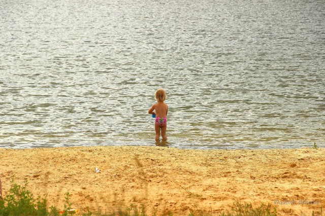 Есть хороший желтый песок. Вход в сам водоем песчаный. Правда, тени на самом берегу нет, так что загорать придется на солнце. Или отойти под деревья, но это уже чуть дальше от воды.