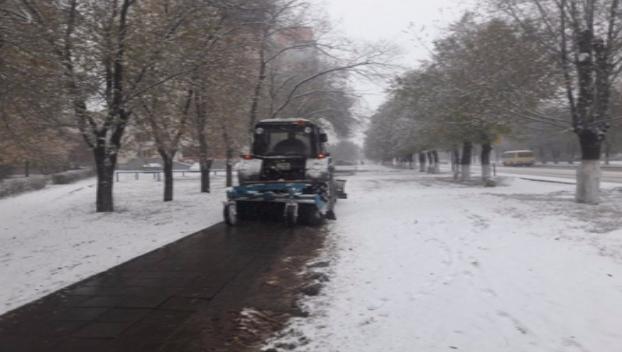 Снег падает и тает. Сотрудники ГКП «Коммунтранс» посыпают смесью песка и соли спуски дорог по Леваневского, Мирошниченко и некоторым другим. Запас смеси пока есть, техника готова. Если будет мороз, и дороги заметет, то чистить и посыпать будут активно.