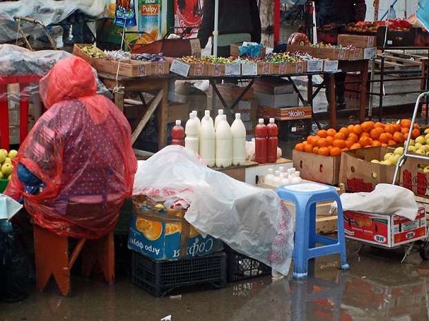 Нередко стоят ящики с фруктами и овощами прямо на асфальте, а бабушки так даже на остановках нехитрым товаром торгуют. Хотя на каждом рынке пустуют уютные павильоны.