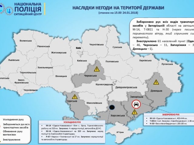 Кроме того, остается сложной обстановка на автодорогах М-14 и р-47 на территории Херсонской области.