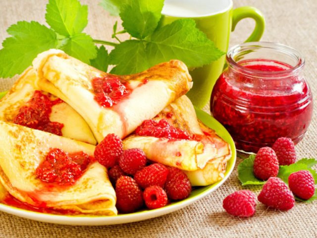 «Блинные суши» — такого вы еще не пробовали. Приготовьте блины по классическому рецепту: смешиваем в блендере 1 литр молока, 2 столовые ложки сахара, 1 чайную ложку соли, 4 столовые ложки растительного масла, 3 яйца, добавляем муки до консистенции жидкой сметаны. Жарим блины без масла. Вместо привычной стопки блинов смело крутите из блинов роллы, начинка — сырная масса, сметана с зеленью, красная икра.