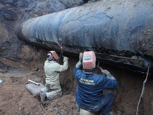 Не прошло и недели, а на Втором донецком водоводе вновь ремонт трубы. И опять течь дала большая железная конструкция, диаметром один метр сорок сантиметров. Эта аварийная ситуация возникла между Славянском и Краматорском. Сейчас там работают специалисты водоканала.