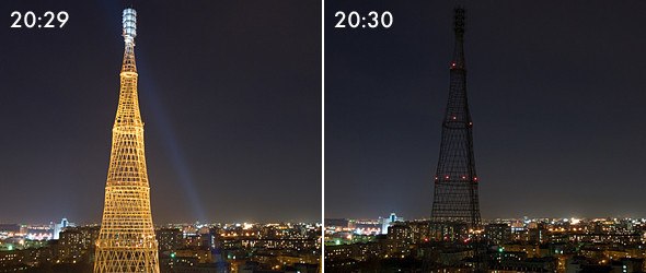 Это ежегодное международное событие, проводимое Всемирным фондом дикой природы (WWF). Проводится в последнюю субботу марта и призывает всех — частных лиц, организации, школы, муниципальные образования, коммерческие учреждения — выключить свет и другие не жизненно важные электроприборы (кроме лифтов) на один час, чтобы стимулировать интерес к проблеме изменения климата, энергетического объединения человечества.