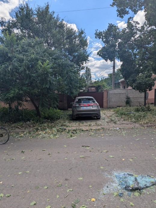 Внаслідок обстрілу також зазнала пошкоджень цивільна інфраструктура — фасади кількох багатоквартирних житлових будинків, приватних домоволодінь та фасад котельні.