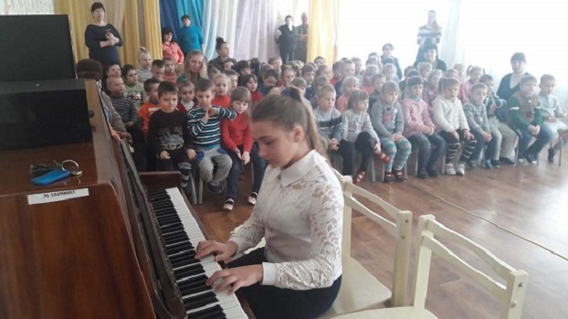 Недавно юные пианисты и скрипачи посетили с концертной программой детские сады «Золотая рыбка», «Золушка», «Мир», «Тополек», «Красная шапочка», где их тепло и сердечно принимали маленькие слушатели и их воспитатели. Звучала музыка к детским сказкам, джазовые и танцевальные произведения. Юные артисты смогли себя выразить, а дети познакомились с музыкальными произведениями. А возможно и впервые в жизни услышали о таких инструментах, как фортепиано, синтезатиор, скрипка, флейта. После столь эмоционального общения с живой музыкой многие малыши и сами пожелали стать музыкантами и учиться в школе искусств.