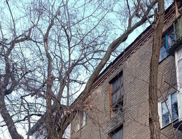 Дерево огромное, выросшее выше крыши, вызвало беспокойство жителей города еще летом прошлого года. По мнению жильцов, оно могло повредить кровлю, да и ветви, падая, грозятся разбить окна или балконы.