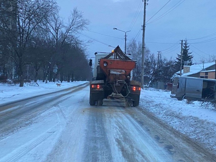 Коммунальные службы общины продолжают работать в усиленном режиме и выполнять работы по очистке и посыпке проезжих дорог города.
