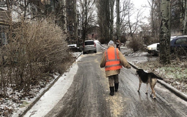 И не позавидуешь сегодня дворникам КП «СЕЗ». На посыпку территорий своих дворов, где сплошной лед, они вышли с самого утра. Посыпочный материал есть в наличии, но его тут же съедает ледяной дождь.