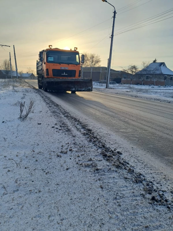 Для предотвращения аварийных ситуаций спецтехника круглосуточно очищает дороги от снега и обрабатывает их противогололедными материалами.