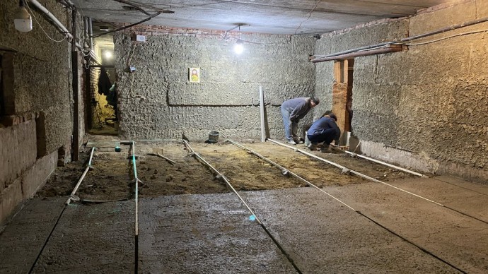 "Этот объект по площади самый большой у нас в Константиновке. Здесь мы вывезли большое количество грунта, более 200 кубов. Сейчас мы осуществляем работы по бетонированию пола, подготовили стене под штукатурку. Здесь будет вентиляция, туалеты, вода, канализация - полностью разведены, и интернет", - рассказал начальник ремонтно-строительной группы Владимир Маслов.