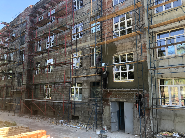 К восстановлению кровли подрядчики – константиновское предприятие «ДОМРЕМБУД-3» – приступили в конце мая. На днях стартовали работы и по термосанации здания. Тендер на выполнение этих работ выиграло краматорское ООО «Краск». Старые окна уже поменяны на новые современные стеклопакеты. Сейчас рабочие штукатурят стены.