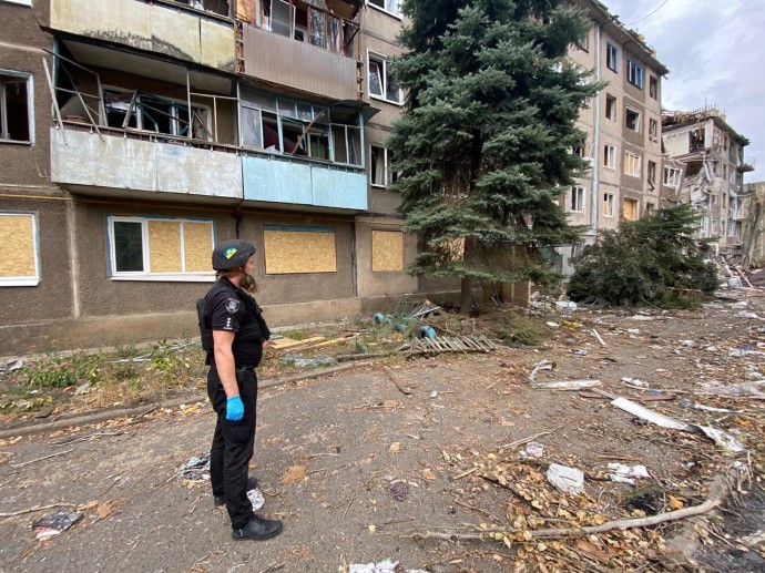 18.09.2025 в 06:00 произошел вражеский авиаудар ФАБ-250 по городу Константиновке. В результате авиаудара пострадавшие отсутствуют. Поврежден фасад многоквартирного дома.