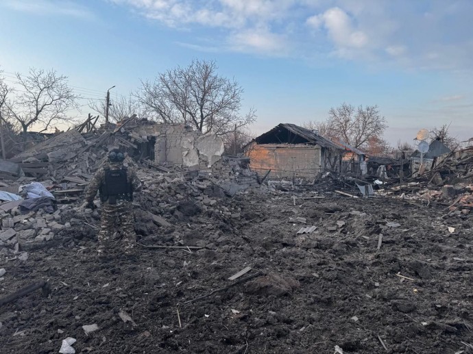 20.02.2025 в период времени с 23:25 по 23.35 враг совершил обстрел из ствольной артиллерии по городу Константиновка. В результате обстрела погибло 1 гражданское лицо, ранено 1 гражданское лицо. Повреждены 5 фасадов частных домов, 2 линии газопровода, 2 легковых автомобиля.