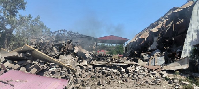 На щастя, постраждалих серед цивільного населення немає. Проте удар не минув без наслідків: пошкоджено фасад одного з підприємств, яке знаходиться неподалік зони влучання.