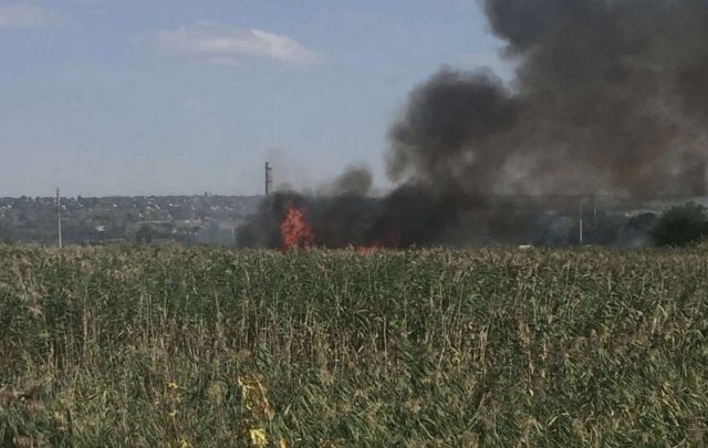 Черный дым от горящего камыша окутал полрайона «Красного Октября». Едкий запах слышен и в жилом секторе, расположенном и рядом с бывшим магазином «Ивушка».