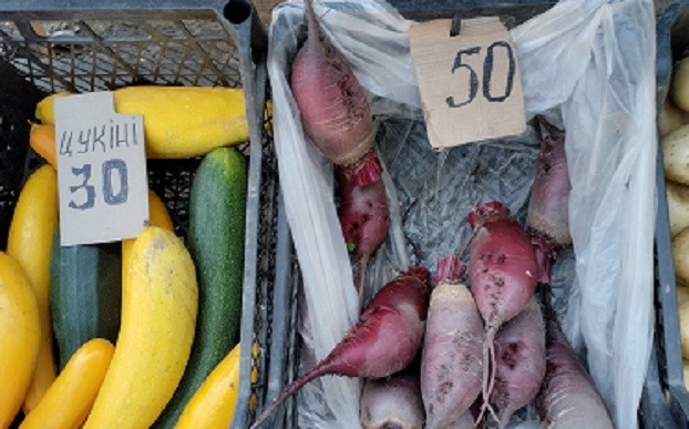 Муж с женой из Кондратовки привезли на хитрый рынок разные овощи, все домашнее, хорошего качества. Самая дешевая капуста, за нее просили 20 грн, кабачки продавали по 30 грн за килограмм, картофель стоил 40 грн, свекла – 50 грн, морковь - 60 грн. Секреты выращивания просты: ранняя посадка и хороший полив.