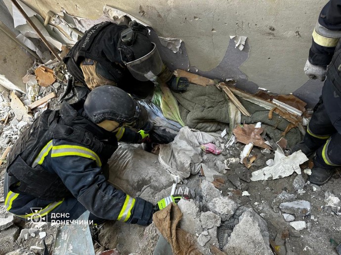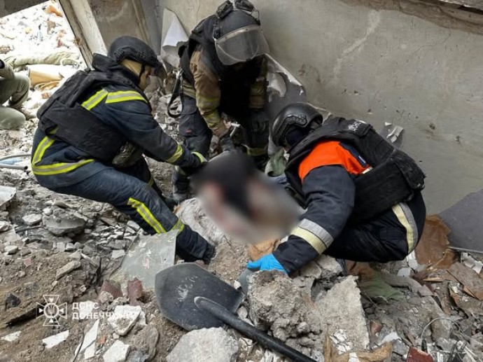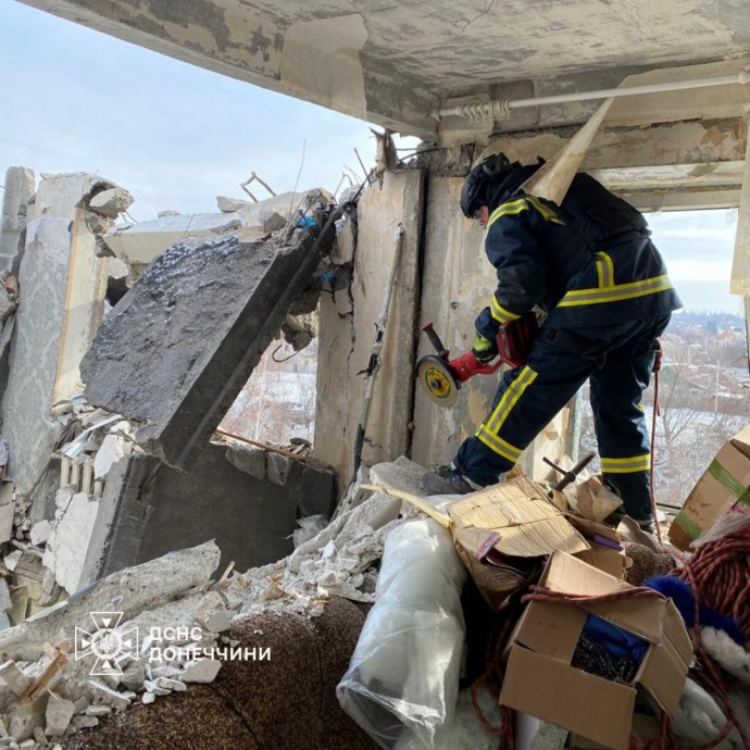 Как сообщает Главное управление ГСЧС Украины в Донецкой области, 19 февраля оккупанты нанесли удар по пятиэтажному жилому дому, что повлекло за собой разрушение между 1 и 5 этажами. Аварийно-спасательные работы продолжались 6 дней. 24 февраля из-под завалов изъято тело погибшего, в общей сложности разобрано 23 тонны строительных конструкций.