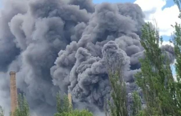 По его словам, от ударов пострадали помещения предприятия, разгорелся пожар. Спасатели ГСЧС пытаются его обуздать.