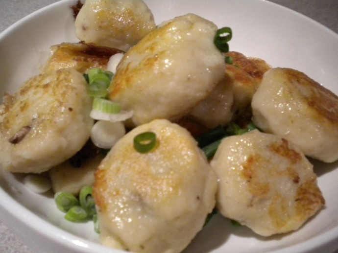 Тесто разделите на равные кусочки с помощью чайной ложки. Доведите до кипения литр бульона или подсоленной воды, добавьте кусочки картофельного теста, варите примерно 15–20 минут. Готовые клецки выложите на тарелку. Перед подачей посыпьте рубленой свежей зеленью.