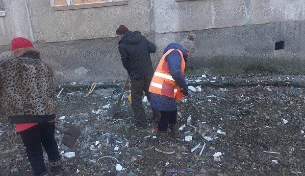 Жители пострадавшего дома и коммунальщики в Константиновке ликвидируют последствия «прилета»