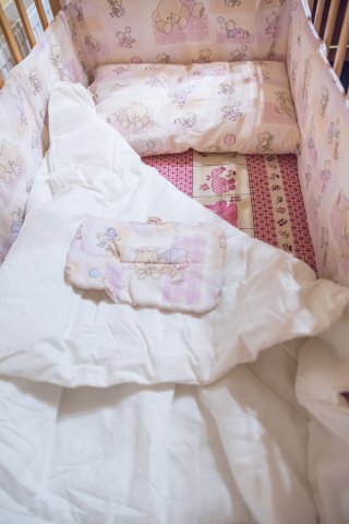 — в комплект входит: теплое одеяло 110х80 см, 2 подушки 57х37 см (тонкая и средняя), наволочка 57х37 см, вкладка, защита по внутреннему периметру кроватки, балдахин;