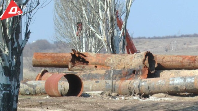 Попасть на объект журналистам с камерой отказали, сослались на незавершенные работы. У резервуаров со стоками лежат металлические трубы диаметром 1 м, выкопанные из земли, на многих - дырки. При укладке новых труб на швах образовались трещины, их забили деревянными чопами - рассказали журналисту "ДоТебе" работники водоканала.