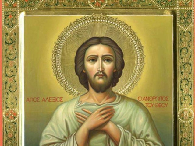 Алексий, человек Божий, жил в конце 4 - начале 5 веков. Согласно житию, Алексий родился в знатной римской семье; его родители были благочестивыми христианами, помогали обездоленным и нуждающимся. В ночь после свадьбы Алексий покинул дом и молодую жену и отплыл на восток, постепенно добравшись до города Эдессы на территории нынешней Турции.