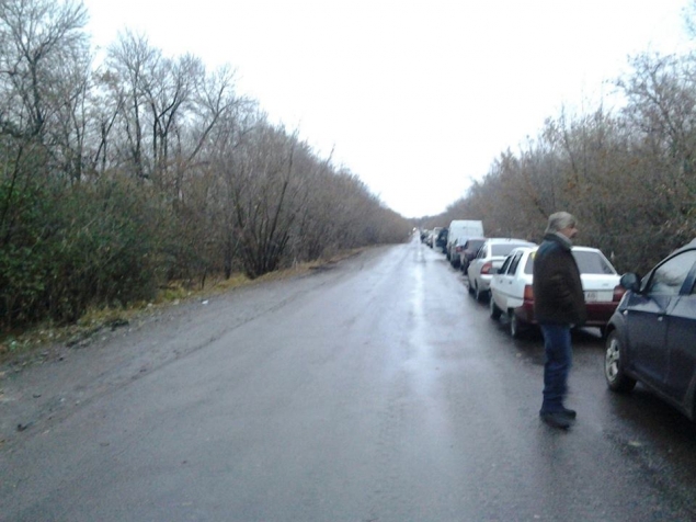 На Волновахе в сторону Мариуполя очередь порядка 3 км, в сторону Донецка - порядка полутора километров. Движение слабое в оба направления, отмечается большое количество льготного транспорта.