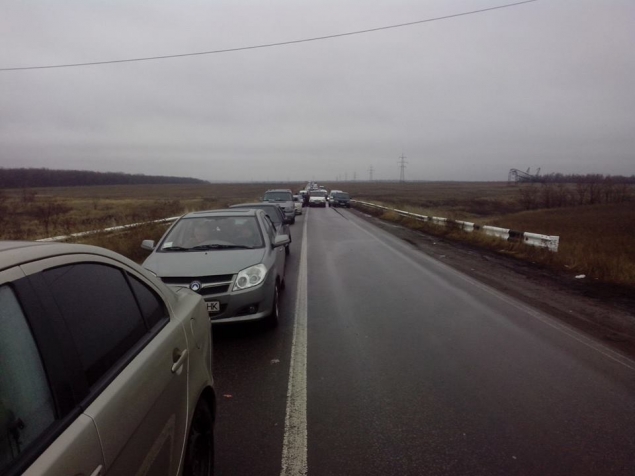- На Новотроицком в сторону Донецка стоит машин 200.