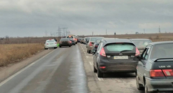 - В сторону Мариуполя на Еленовке очередь до автобусной остановки движение ооочень медленное