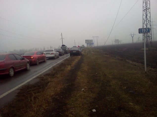 - Стоим в сторону Донецка. До заправки паралель метров 600. Уже час движение 0.