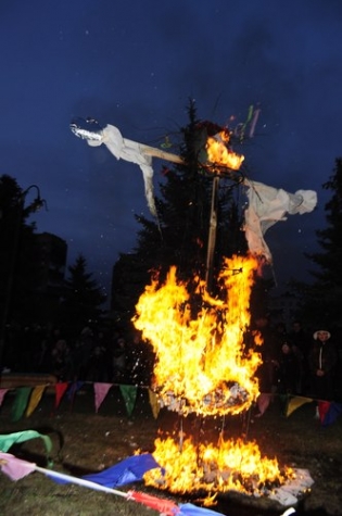 Кульминацией Масленицы остается и по сей день сжигание чучела Зимы - символа ухода зимы и наступления весны. Предваряют такое обрядовое сожжение песни, игры, пляски, хороводы, сопровождающиеся угощением горячим сбитнем и блинами, а также так называемыми булочками-жаворонками.