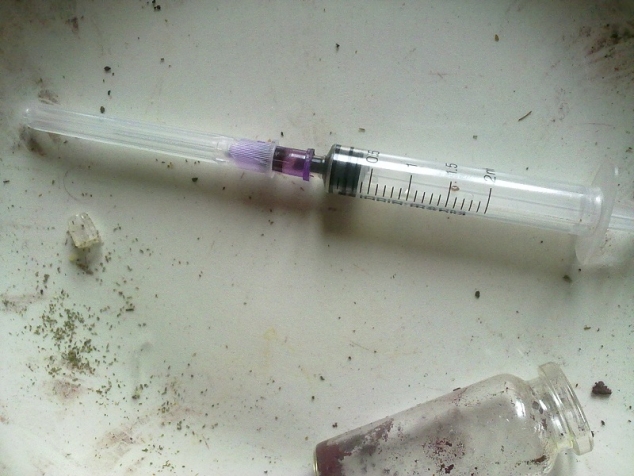 По результатам осмотра, в квартире было обнаружено и изъято: три одноразовых медицинских шприца, объемом 5 мл, 2 мл, 2 мл, с остатками вещества темно-коричневого цвета, одна пластиковая бутылка с веществом желтого цвета, а также фарфоровая тарелка с остатками вещества коричневого цвета.