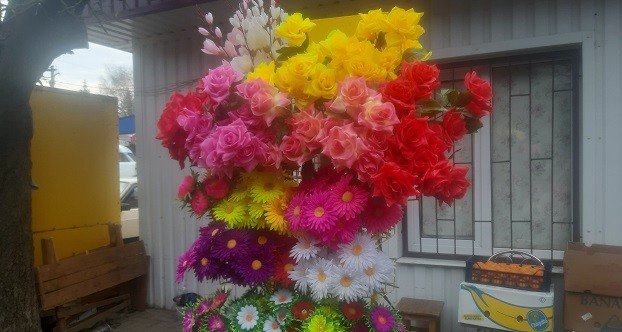 Готовясь к поминальной неделе, покупатели подходили к витринам с искусственными цветами. Цены на этот товар остался на уровне прошлого года, но большим спросом он пока не пользуется.