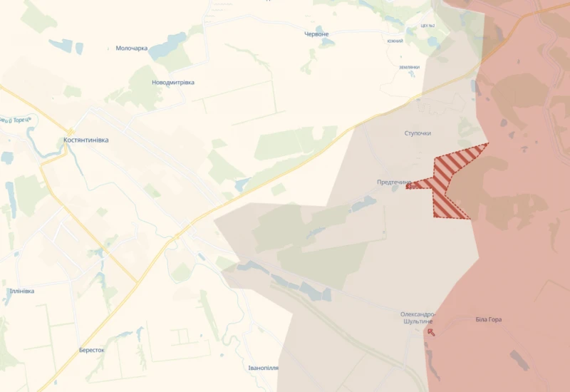 Як зазначають аналітики, на Костянтинівському напрямку противник зайняв нові позиції біля села Предтечине, що входить до Костянтинівської міської територіальної громади.