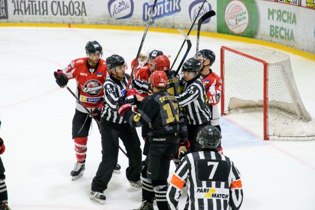 В третьем периоде «Донбасс» уже мог позволить себе играть более аккуратно, ведь обязательной задачи бежать вперед и забивать уже не было. В игровом процессе выделилась яркая драка Владимира Романенко с Бартоломеем Бухавским, которую, впрочем, оба хоккеиста завершили на ногах, не выявив сильнейшего.