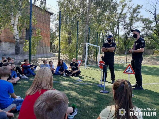 Мероприятие для Степановских школьников прошел в формате бесед на природе возле школьного стадиона. Учебные дорожные знаки в виде наглядного инвентаря понадобились полицейским, чтобы разъяснить запретные или предупредительные действие дорожных знаков.