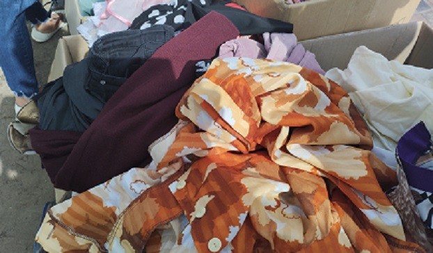 Недалеко от входа в здание стояли несколько ящиков с одеждой б/у, где Алла выбрала несколько кофточек и платьев для себя и маленькой внучки. Вместе с ней подбирали то, что им нужно, еще несколько человек.