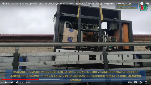 23 июля коммунальное некоммерческое предприятие «Многопрофильная больница интенсивного лечения Константиновского городского совета» получила генератор, способный обеспечить бесперебойную работу при необходимости.