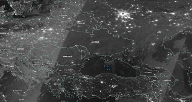 Космическое агентство NASA показало спутниковый снимок обесточенной Украины. Кадр был сделан после масштабной ракетной атаки России.