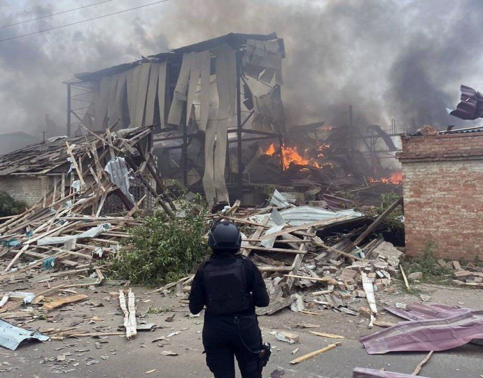 3.09.2024 г. в 10:53 произошел вражеский авиаудар КАБ-500 (управляемая авиационная бомба с модулем УМПК) по городу Константиновке – нанесен удар по территории общества с ограниченной ответственностью. В результате обстрела разрушено складское помещение элеватора. Повреждены 2 частных дома, линия электросети ДТЭК. Пострадавших нет.