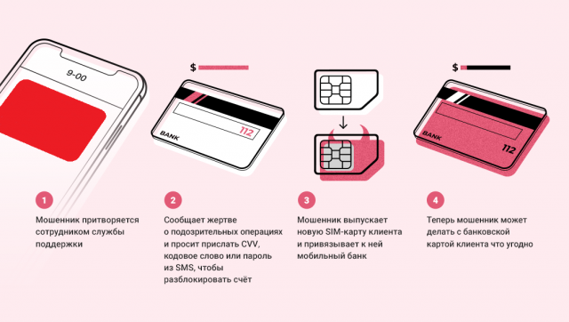 Злоумышленники действуют по следующей схеме: блокируют «симку» телефона, номер которого привязан к банковскому счету, и пока жертва восстанавливает сим-карту в сервисном центре - очищают счет.