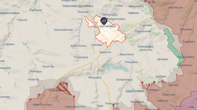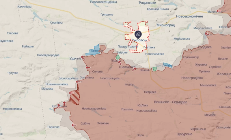 Зміни підтверджені на оновленій карті бойових дій, де видно, що російська армія закріпилася на нових позиціях у напрямку Костянтинівки та Покровська.